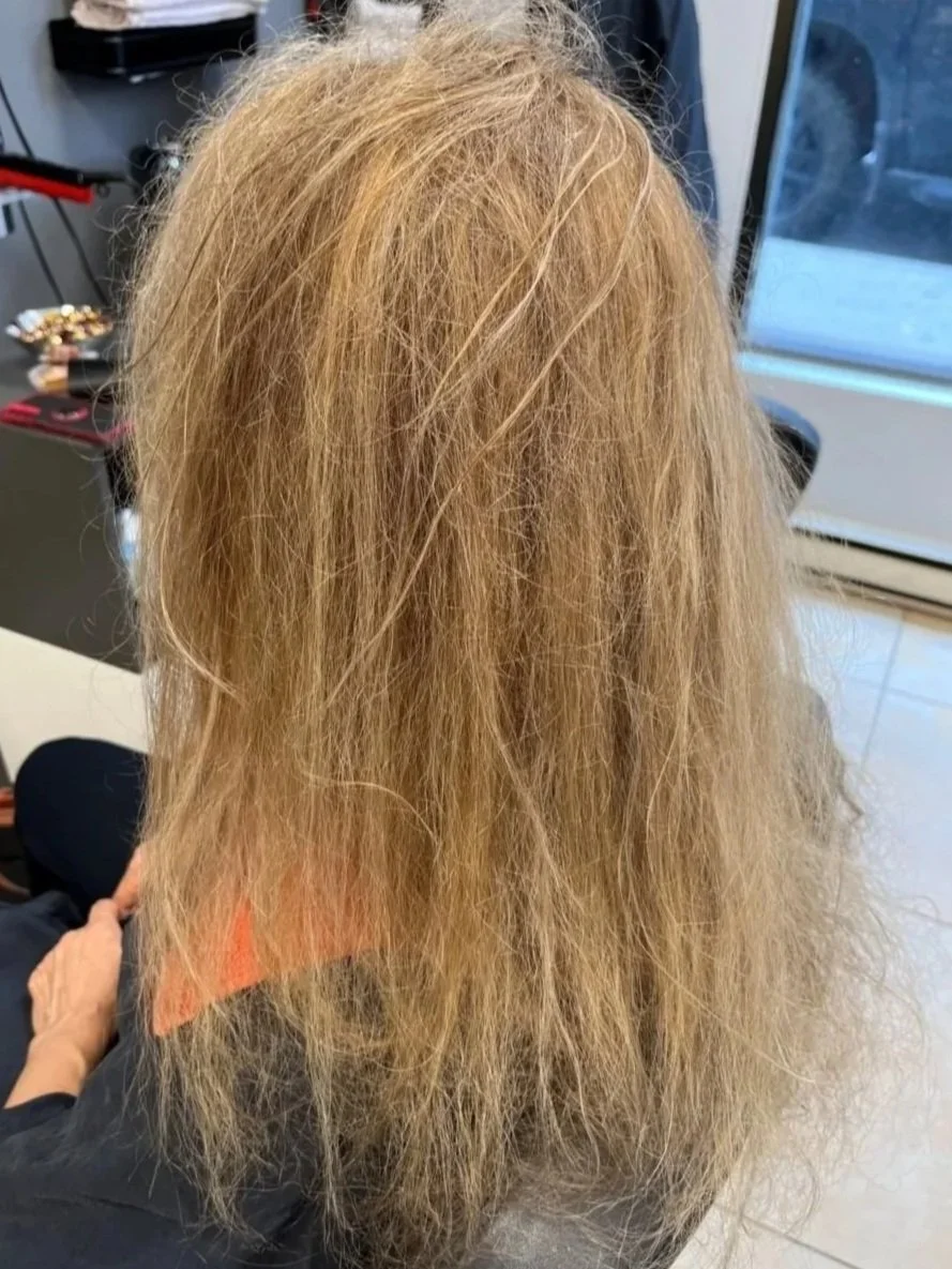 Our Hair Treatment works by infusing the hair with a blend of collagen and amino acids, which are essential components for healthy hair. This treatment involves applying a solution containing collagen and amino acids to the hair, followed by heat to seal in these nourishing ingredients. The process helps to strengthen the hair, improve its elasticity, and restore its natural shine and smoothness.